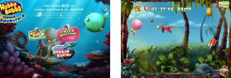 I was the Lead Developer on this project. A side scrolling race game was developed, using a fish floating with a Hubba Bubba bubble as the hero. He has to sneak through the jungle, avoiding spikes and traps while finding fruit, mulitipliers and packs of gum to use as his power-up. The game is designed to be kid-friendly right from the starting screen. Everything on the page is interactive, including the cartoon sea life. By clicking on the shells and foliage, players can create a soundscape before the game begins. Click here to play the game. (Original site is now gone) |