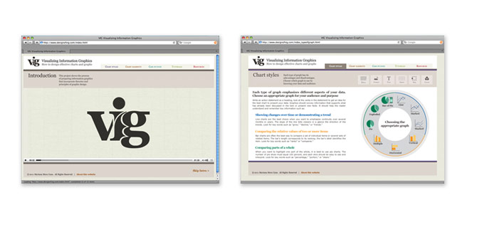 designofvig uses interactive tools to enable users to create more meaningful and engaging presentations that incorporate the theory and principles of information graphics. This website was created for my Master of Fine Arts thesis project.